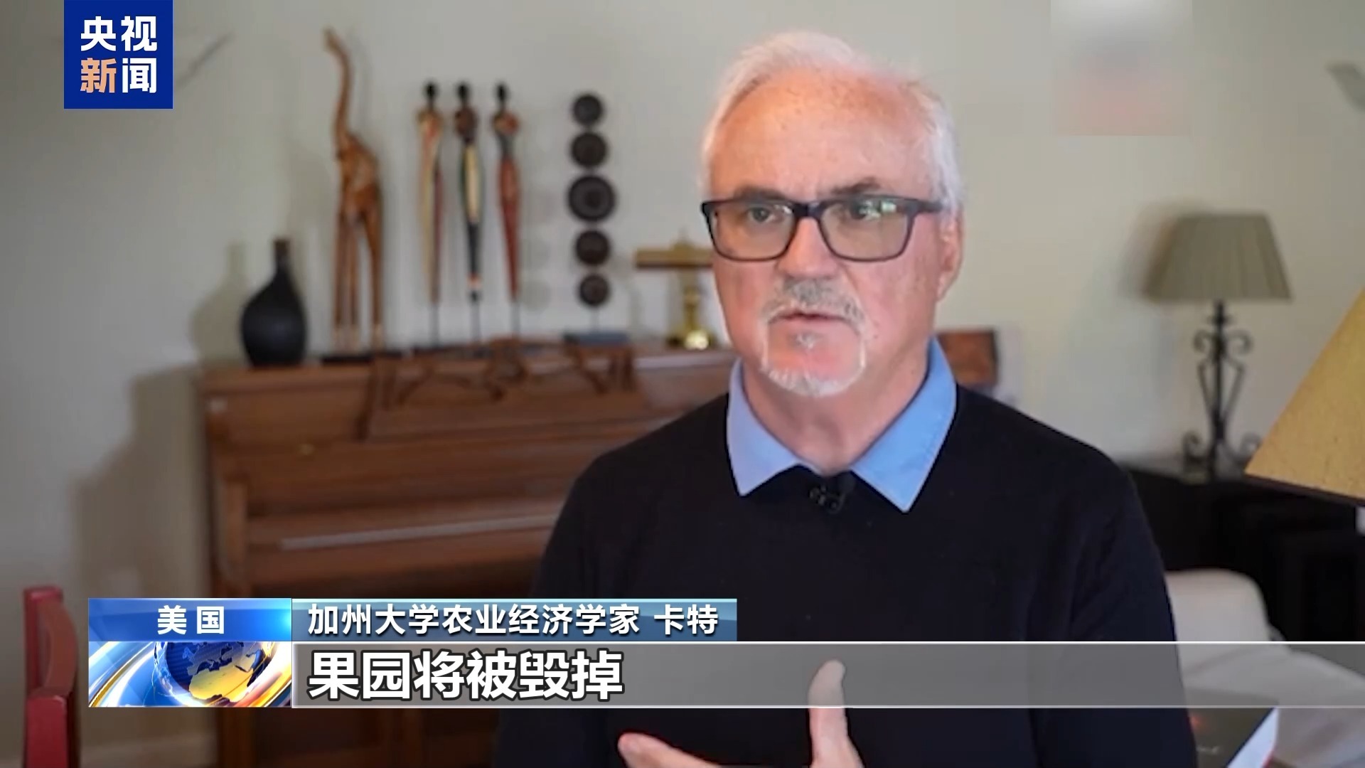 加州大学农业经济学家 卡特:加州杏仁产业将遭受重大打击,果园将被毁掉,农场主将遭受损失,(加州中央谷地里)将到处是要出售的农场。