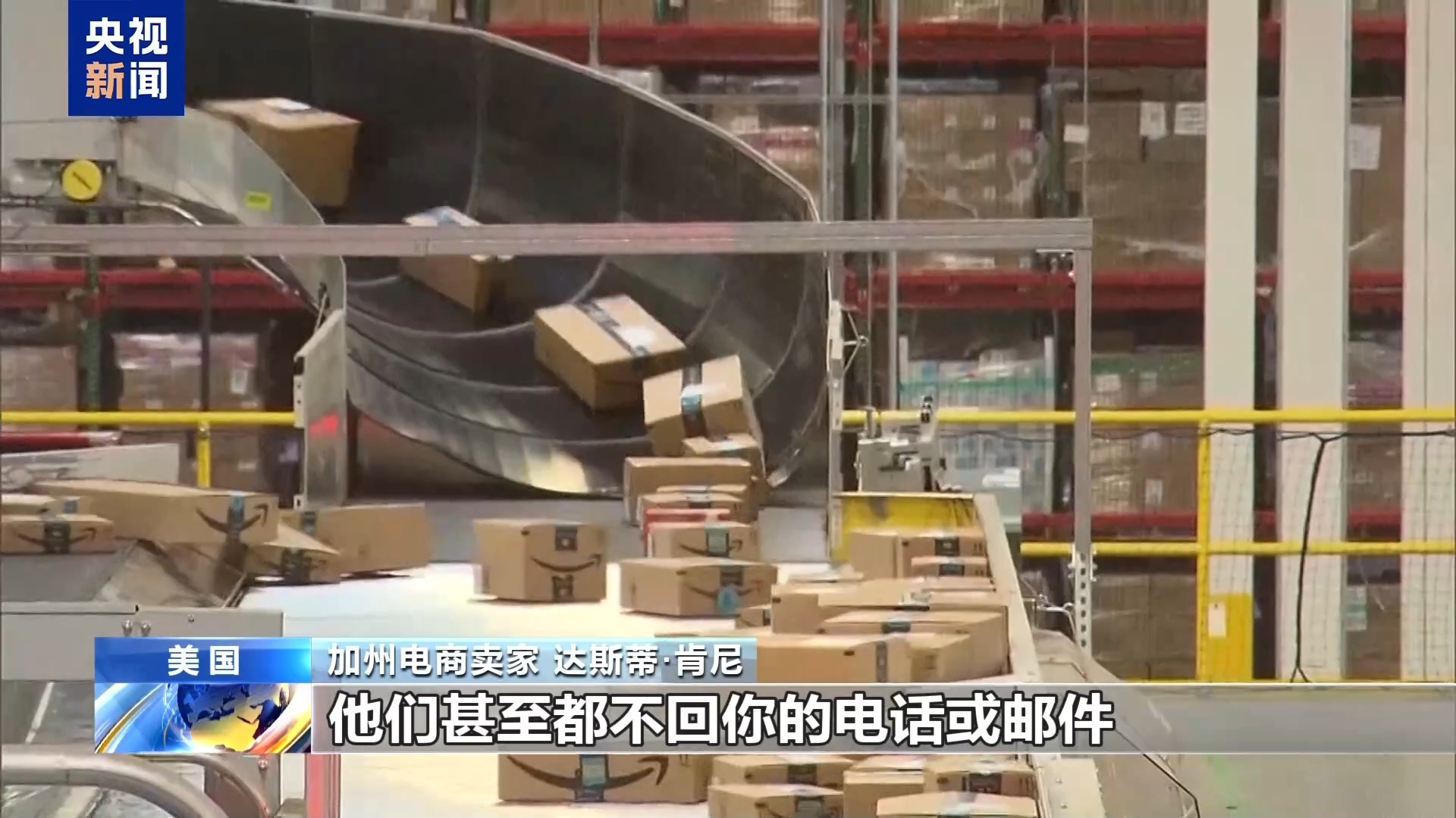 同样受打击的还有加州的电商卖家。加州北部的这个小仓库里,电商肯尼正在准备把她的产品放到亚马逊上售卖。